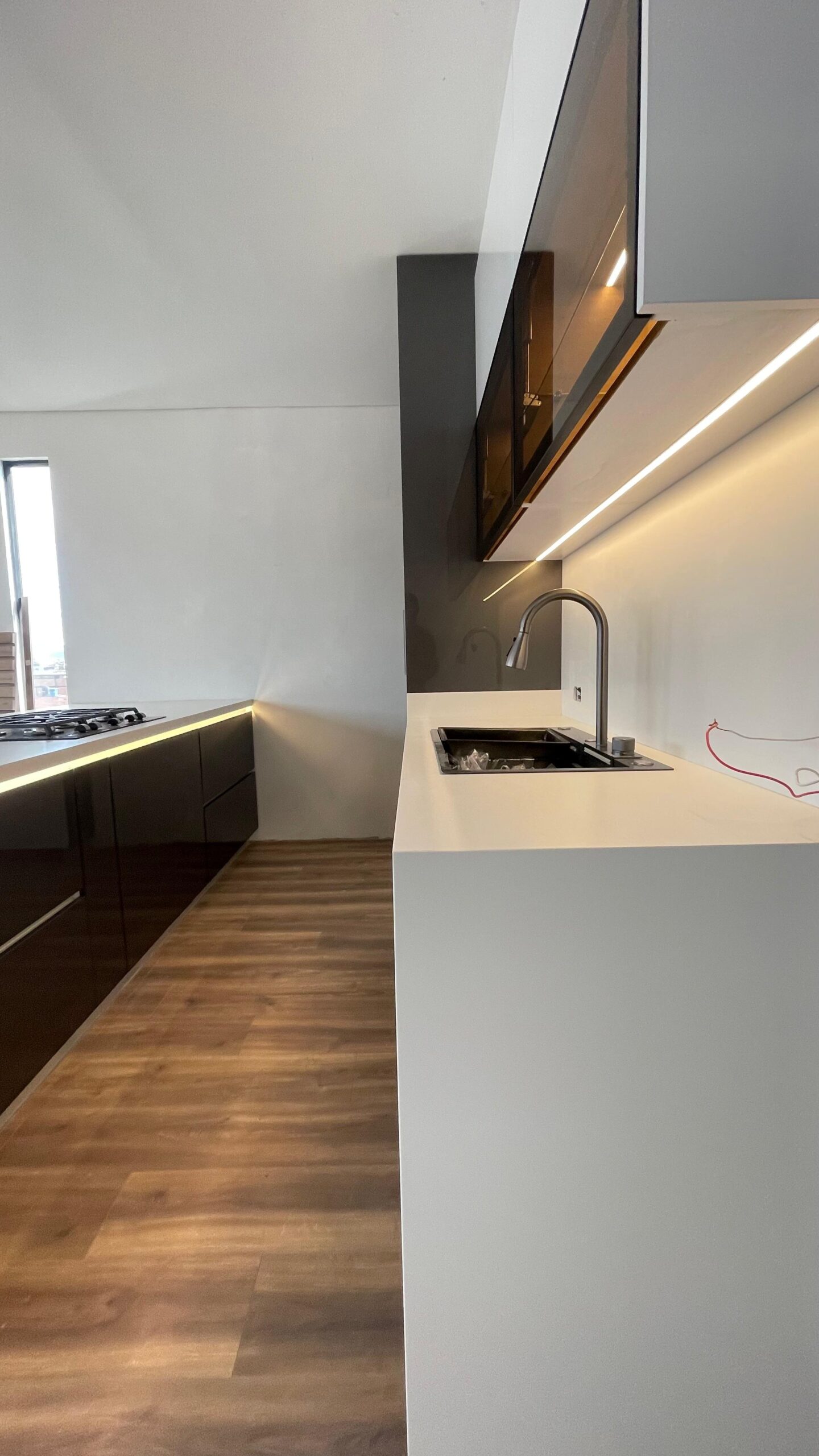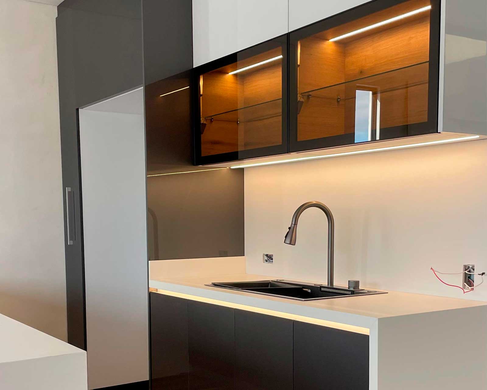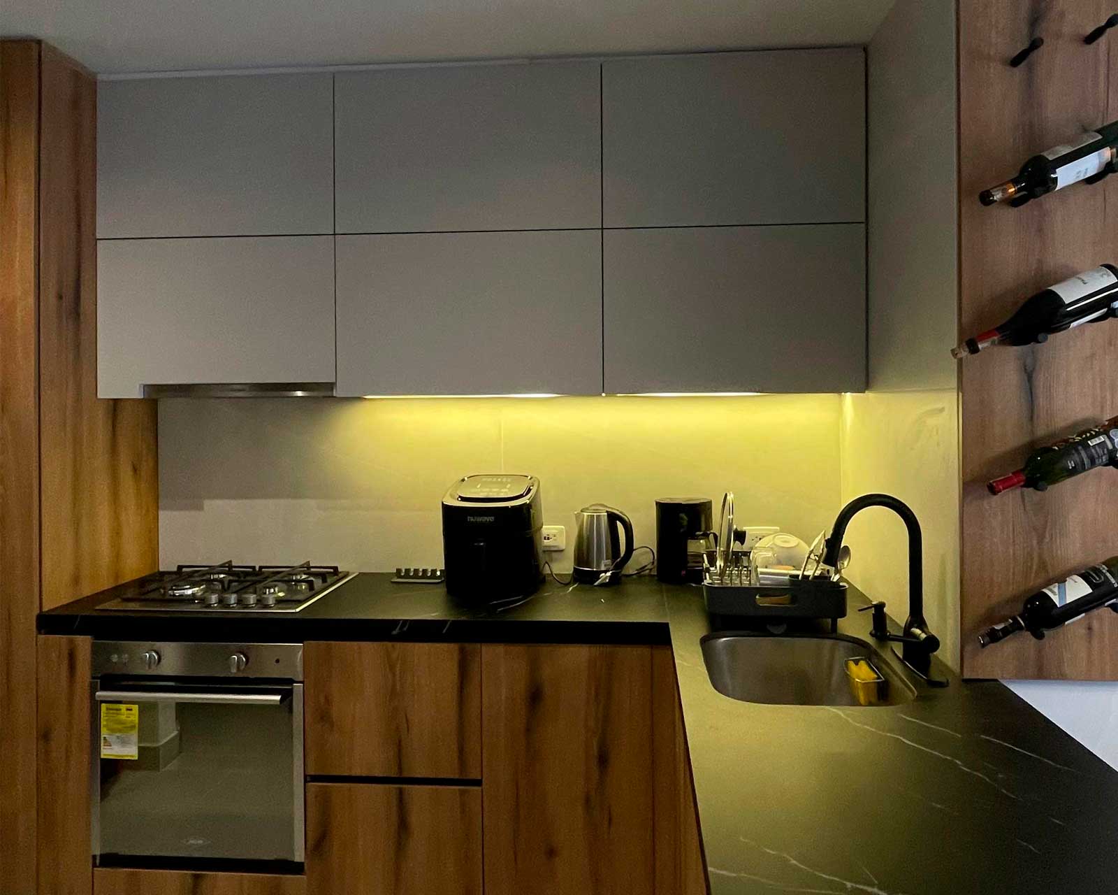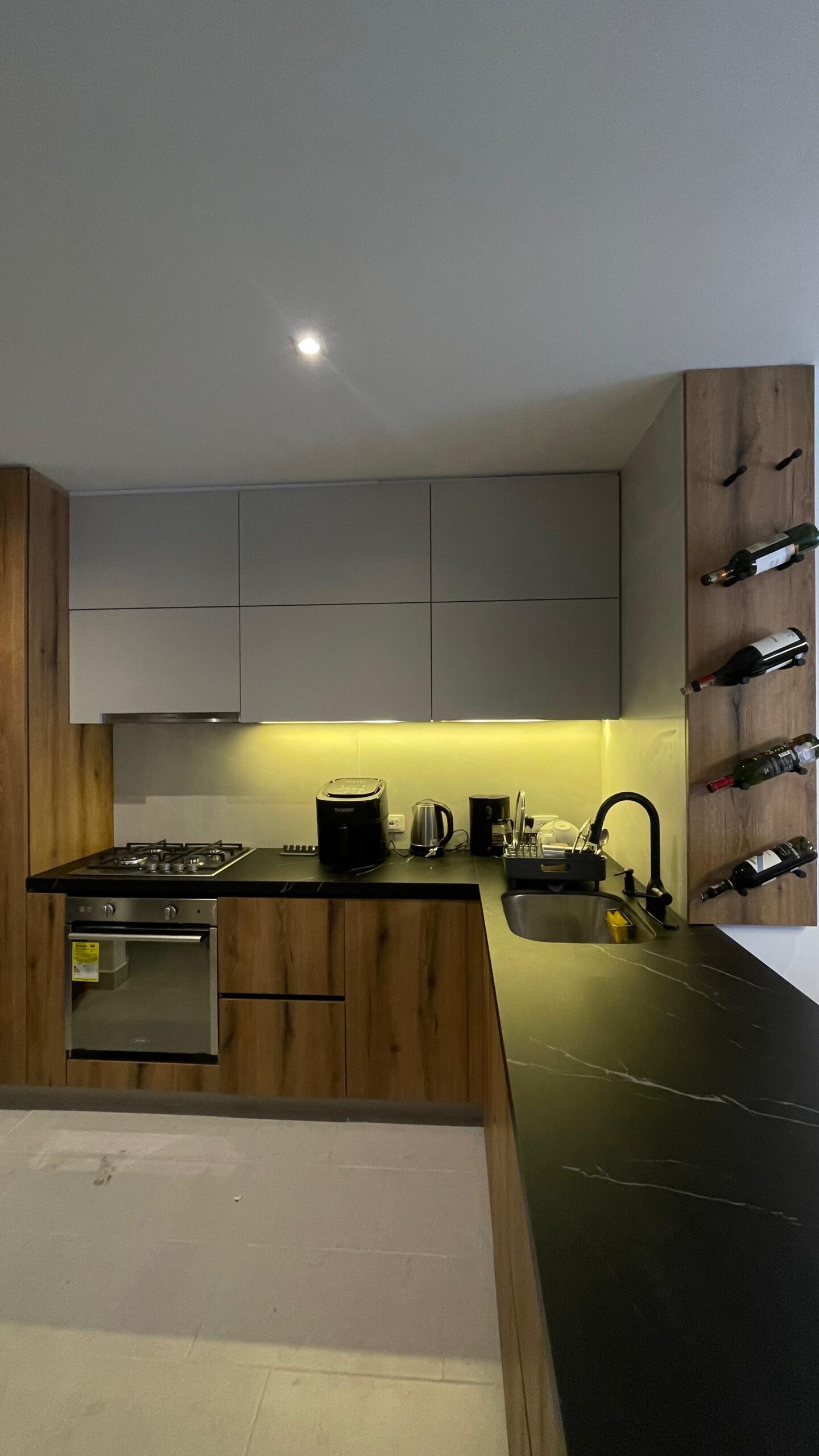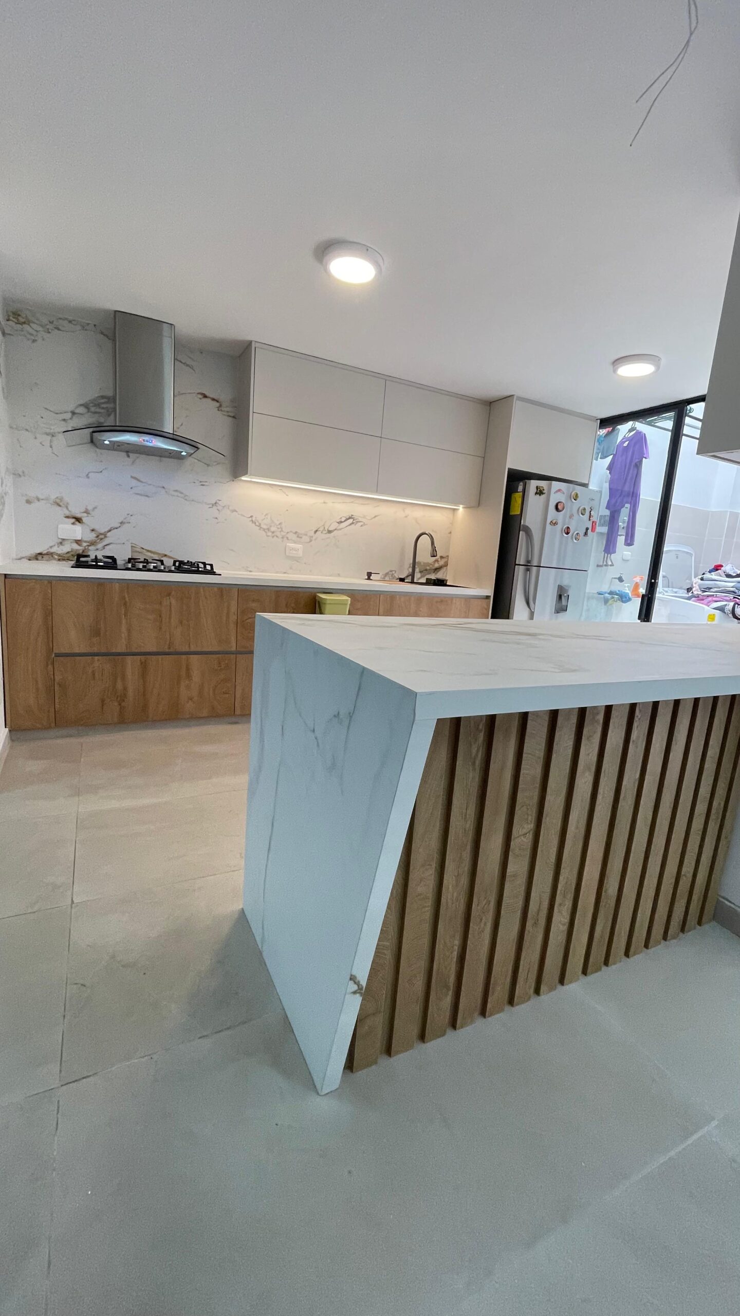 Equipada con cajones laterales alemanes certificados y bisagras de cierre lento, la Línea Diamante asegura suavidad y durabilidad en cada movimiento. Su mesón sinterizado es altamente resistente a la temperatura, rayones y uso intensivo